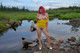 Красноволосая дама у ручейка без трусиков и лифчика очень сексуальной выглядит!