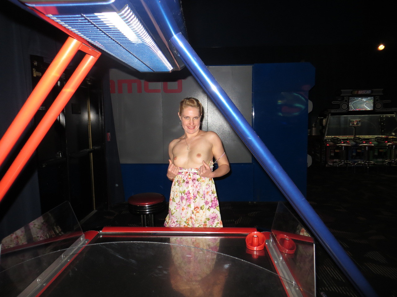 В удобные моменты показывает, что под платьем ничего нет