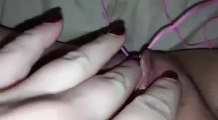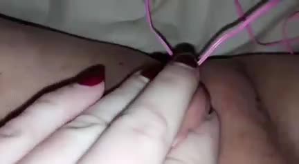 Девушка вставляет виброяйца в вагину и помогает ещё вибратором себе
