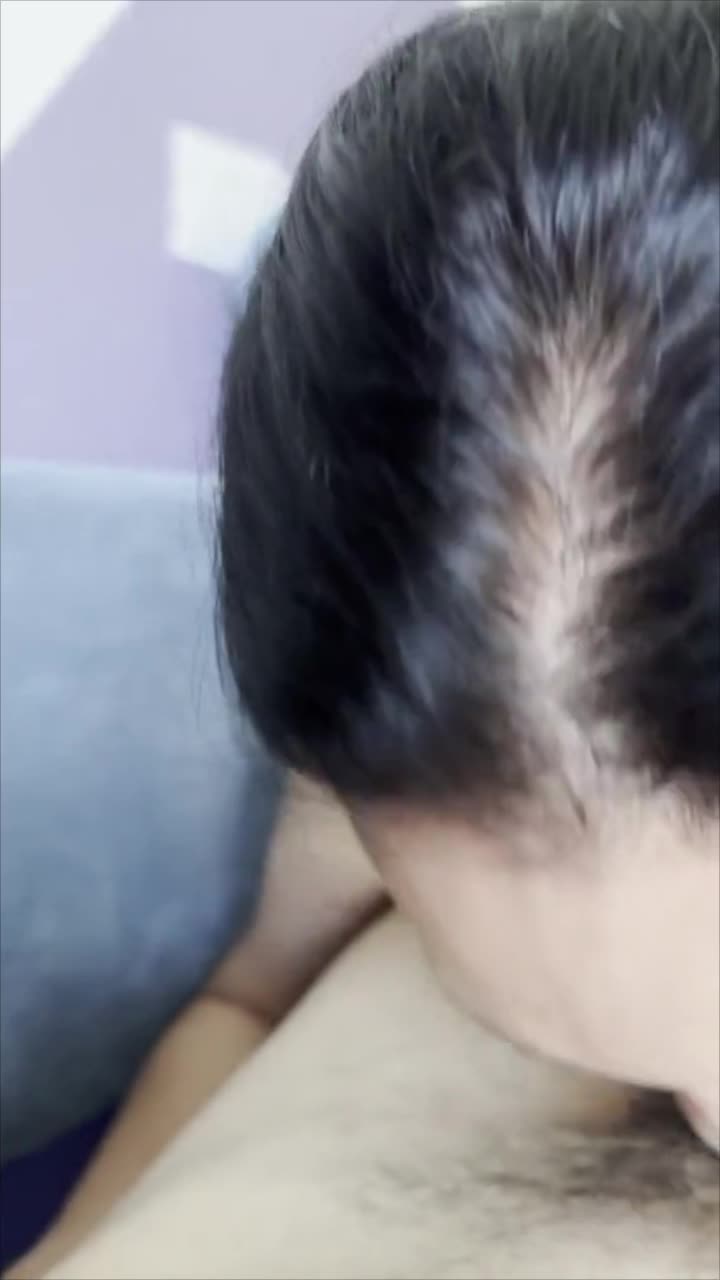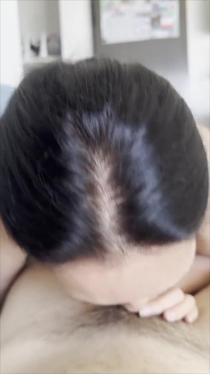 Зрелая женщина азиатской внешности сосет член молодого парня на камеру!