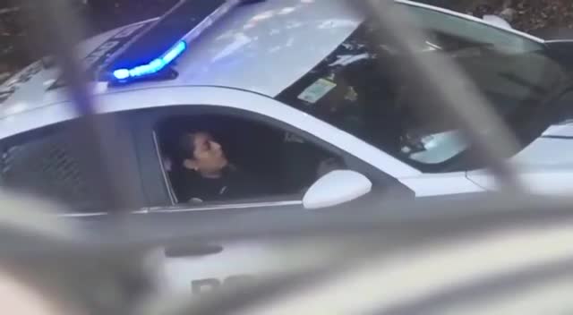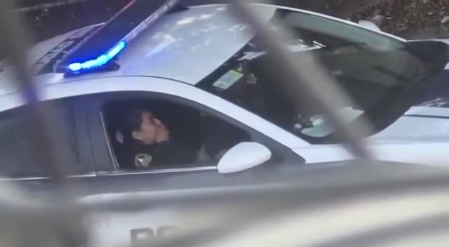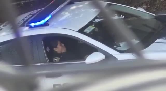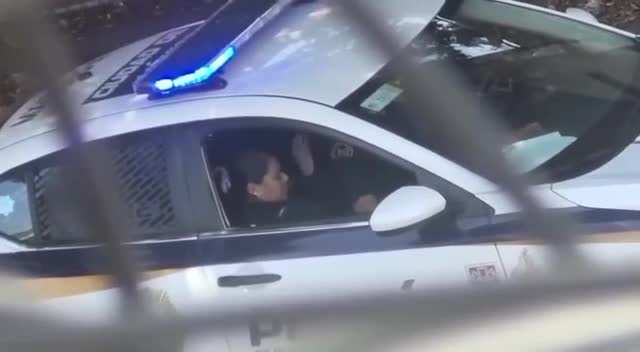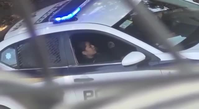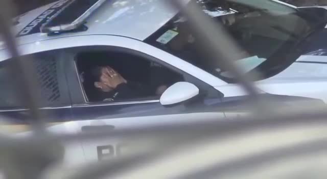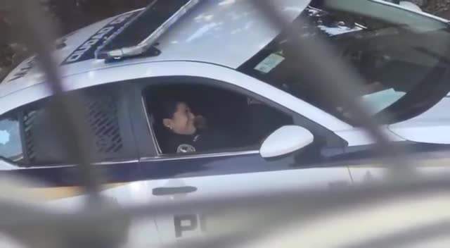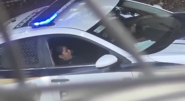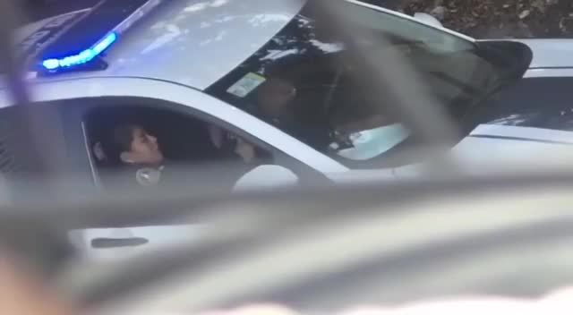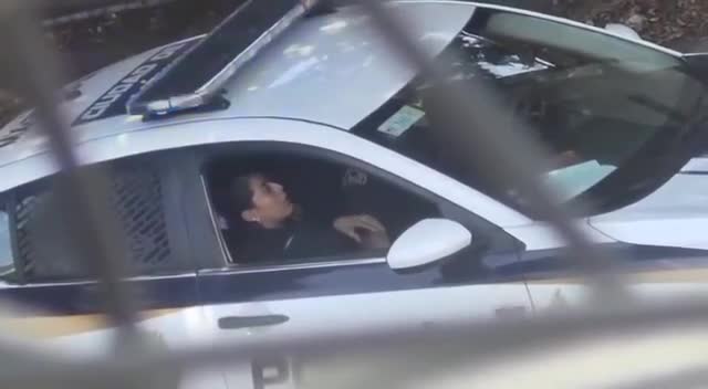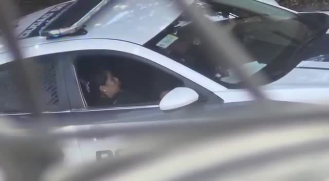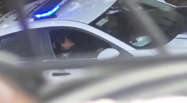 Полицейский доводит свою коллегу до оргазма прямо в служебной машине.