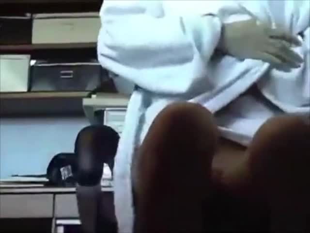 Зрелая женщина после ванной в халате сидя за компьютерным креслом,мастурбирует до оргазма свою писю!