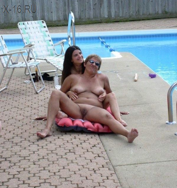 Мать и ее дочь весело проводят время у бассейна, притворяясь лесбиянками.