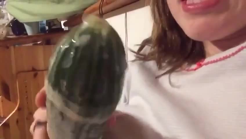девка трахает пизду огурцом в презике за неимением хуя