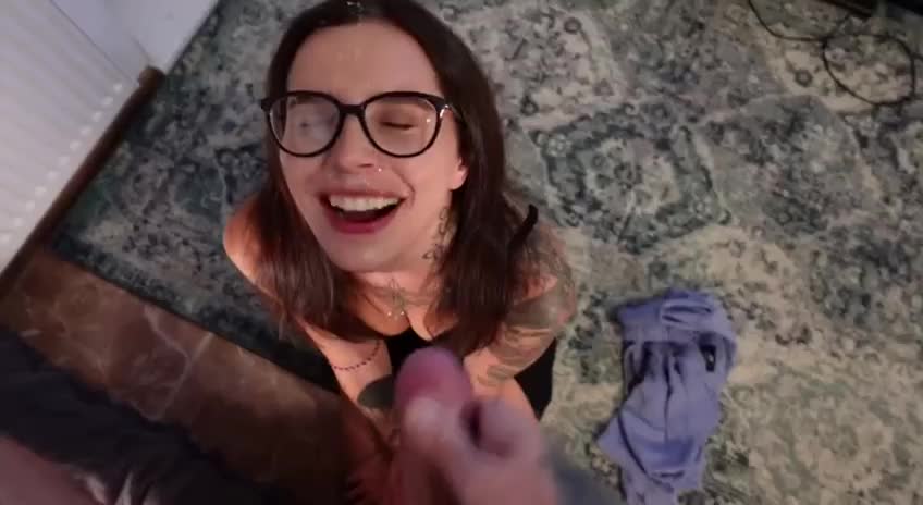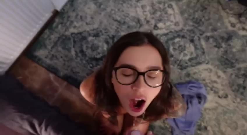 девка не раздеваясь сосёт хуй и получает спермочку