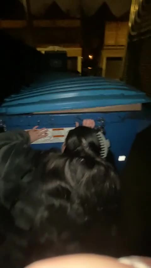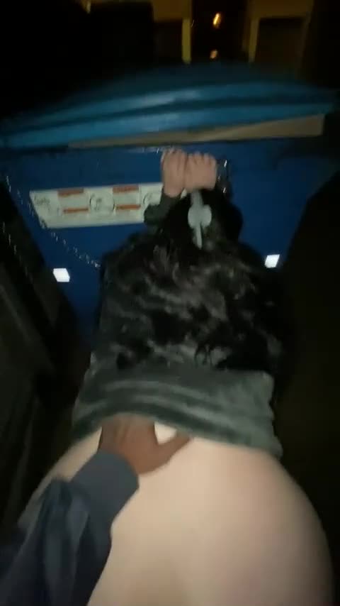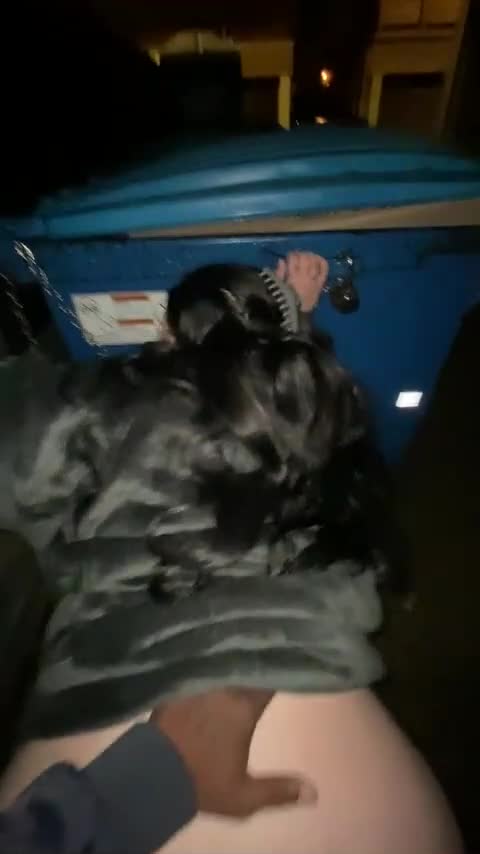 Зрелую брюнетку с большой попой у мусорных баков трахает черный парень и снимает на видео от первого лица!