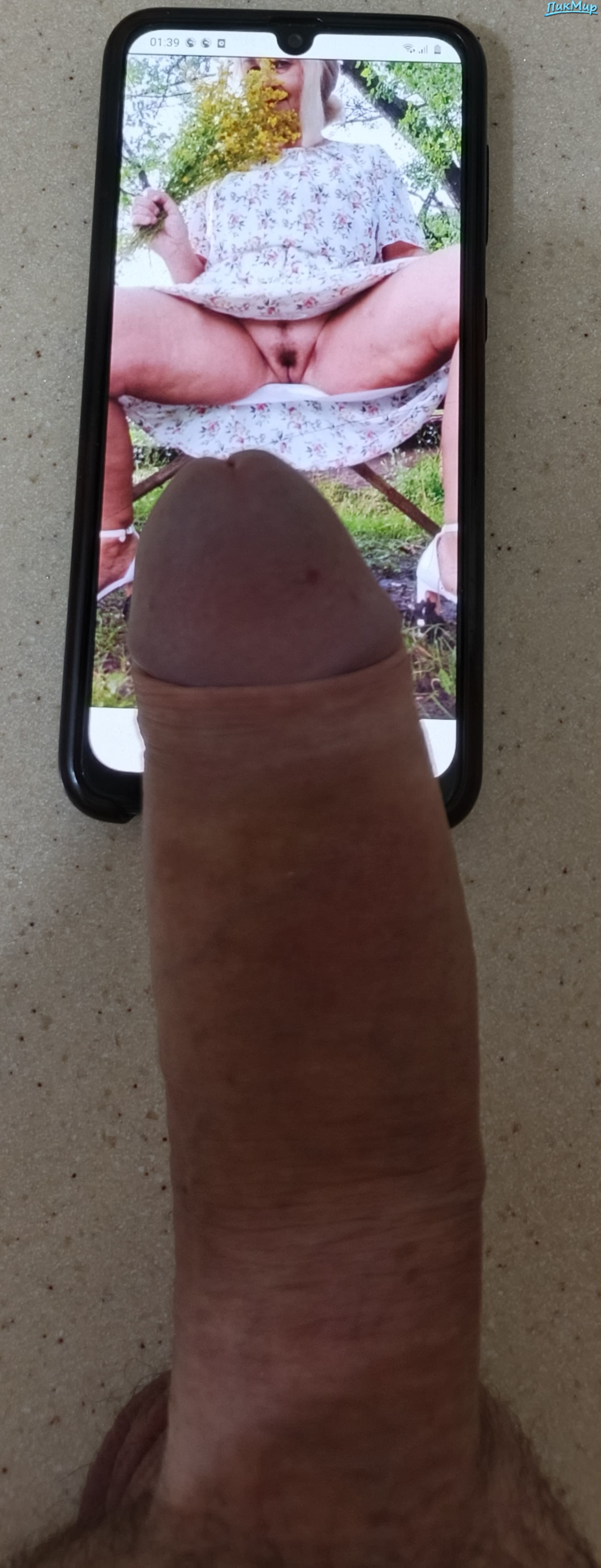 Зрелая женщина на фоне члена