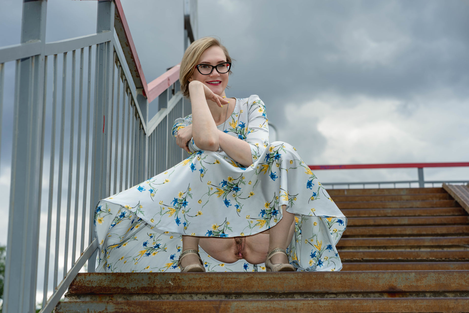 Прогулка возле железной дороги и на платформе, конечно, клёвая. Тем более такое платье наготу, скрывает.Кадры на прогулке выбрали, конечно, яркие.