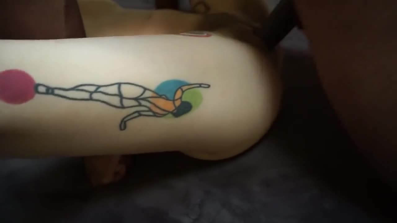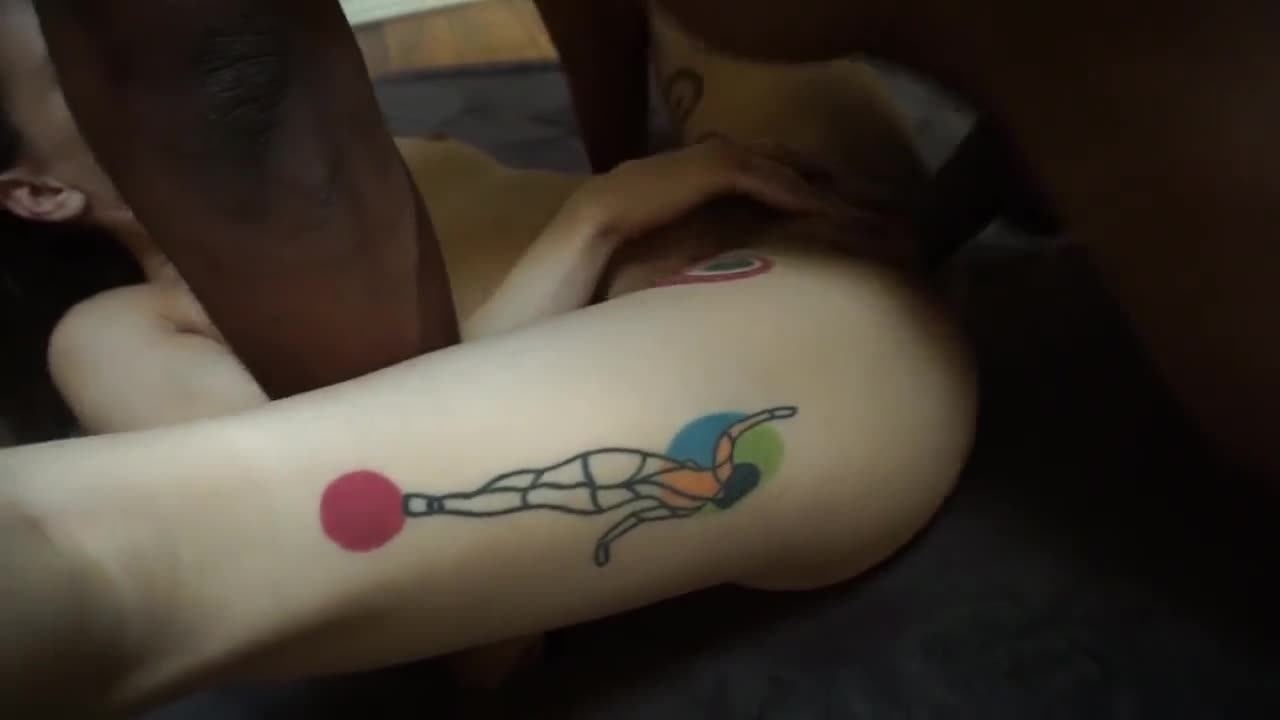 Там явно какое-то занятное мероприятие. В кадре мелькает её подружка но основное действие с татуерованной малышкой и двумя неграми.