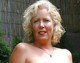 Зрелая, но все еще прекрасная женщина исследует зеленый сад обнаженной.