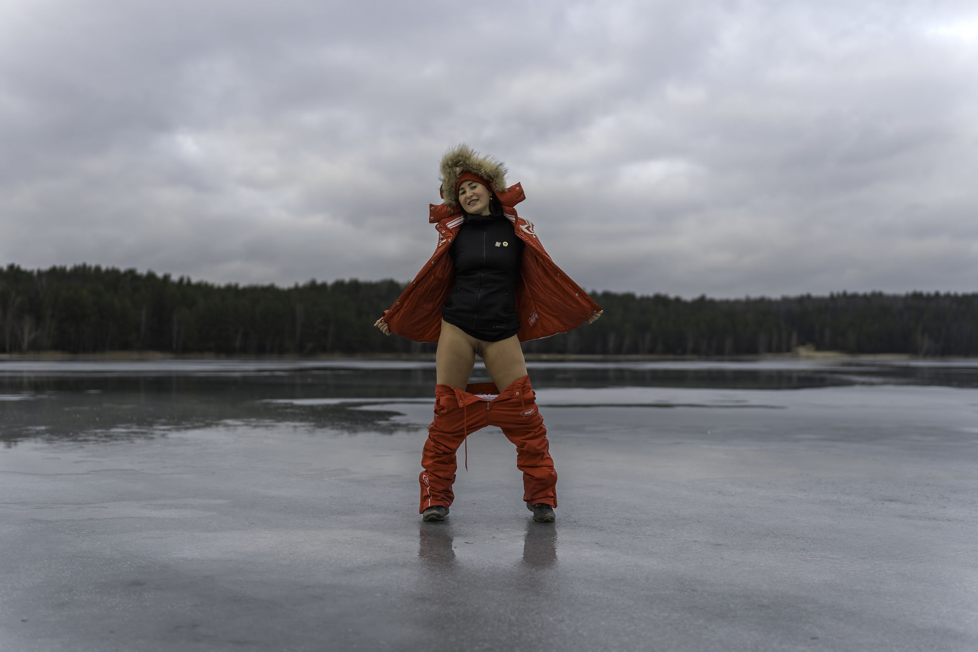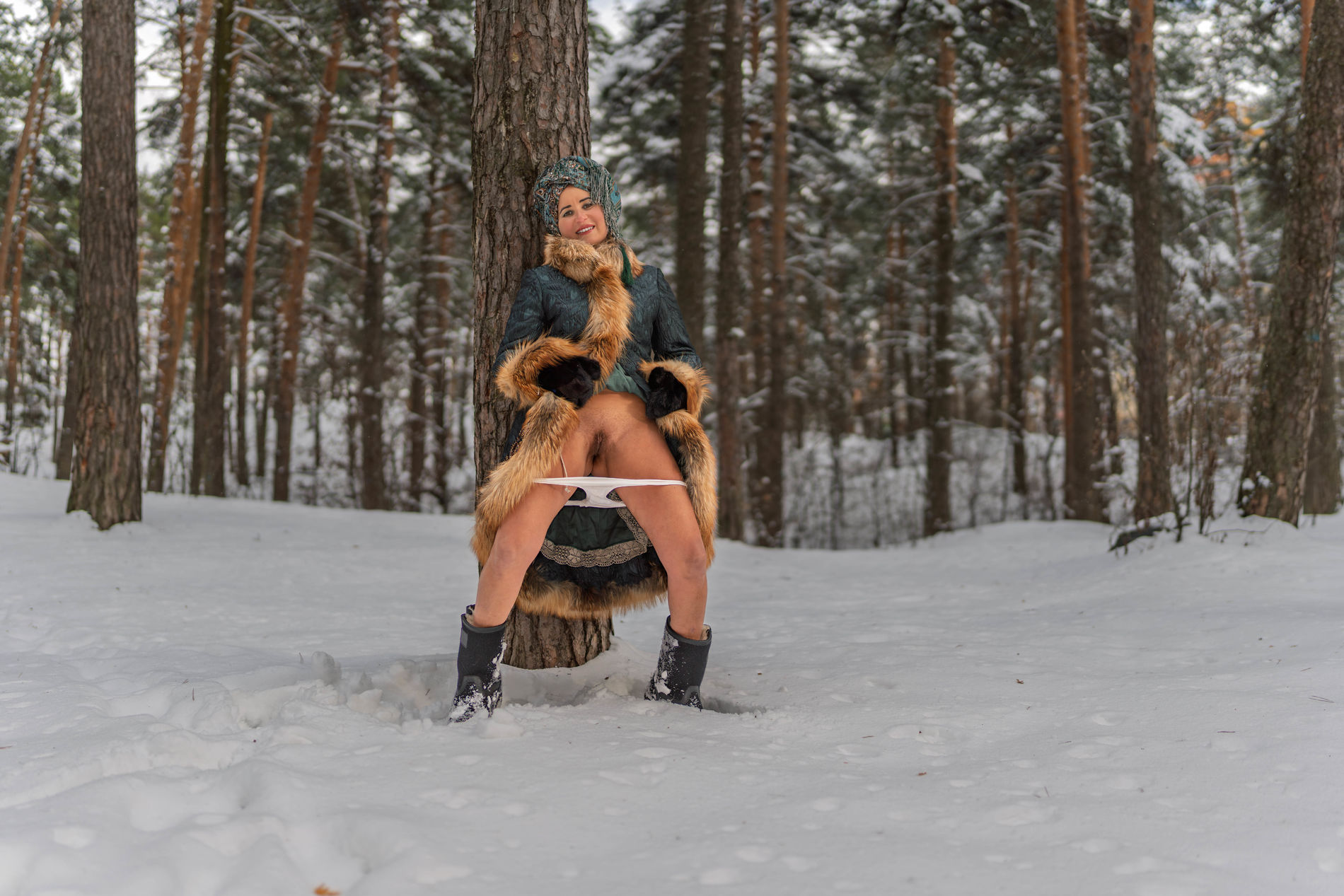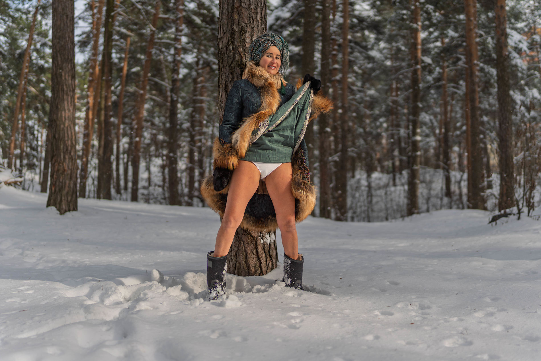 Спортивная девушка раскрывает свои прелести в разные времена года