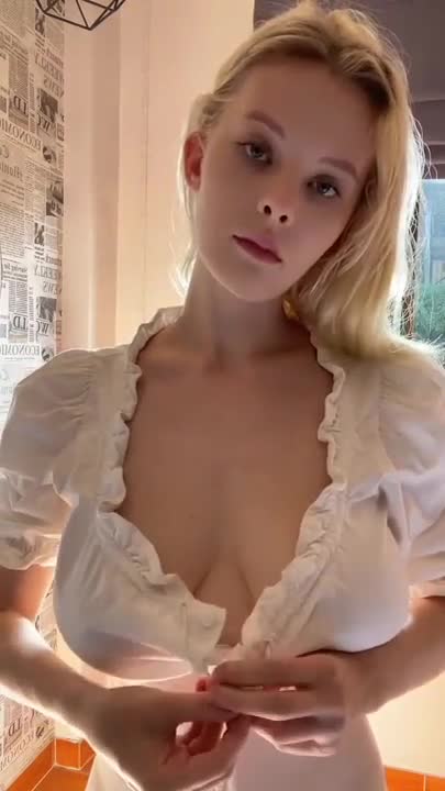 Красивая молодая девушка продемонстрировала свою пышную грудь.